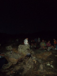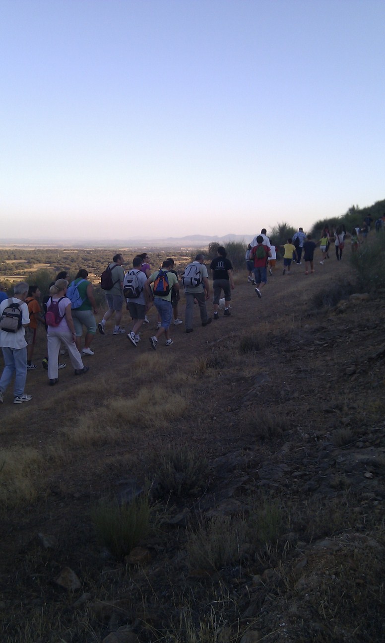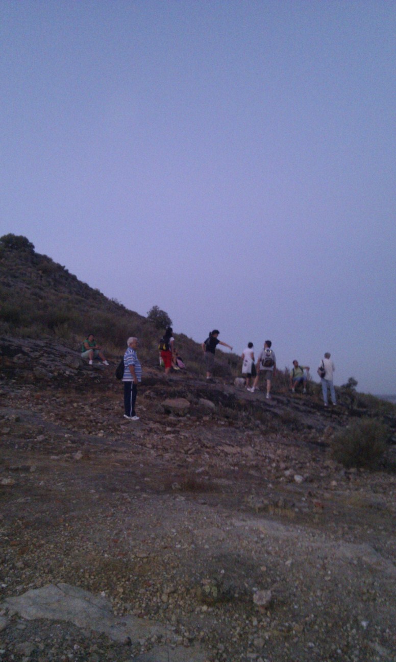 Con una asistencia de algo más de 40 personas, ayer noche se celebró la II ruta nocturna al Cerro de San Cristobal. Contando con la compañía de la luna llena, que nos alumbró la cena y la bajada, pero que apenas nos dejó ver estrellas, pudimos observar la estrella polar, la osa mayor y menor, casiopea, la constelación del cisne o escorpión, entre otras.