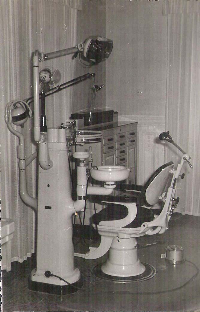 Cuando no trabajaba en su bonita clínica de Logrosán, pasaba la consulta en casas particulares o pensiones, él sentado en una silla y el paciente en otra a la que se fijaba un reposacabezas, cubo a la izquierda para recoger los enjuagues de todo el mundo, aunque no era nunca «todo», luego no faltaba el que seguía escupiendo sangre por la calle y dejando «adornos rojos» en el suelo con total naturalidad, y un vaso lleno de agua que se limpiaba entre paciente y paciente, el cubo no. El torno eléctrico colgado de un trípode, y, por si acaso, otro torno «de pie», la electricidad se iba con bastante frecuencia y no podía uno echar el día en balde; una lámpara de andar por casa para poder ver algo y …a trabajar. Mientras él extraía piezas y las tiraba al cubo o tomaba medidas, registros y hacía algún (pocos en verdad) empaste, sus ayudantes arreglaban dentaduras rotas, pegaban dientes, daban forma a los ganchos, vaciaban impresiones con escayola, montaban en articulador los modelos y limpiaban lo que se iba usando. Una vez, al llegar a un pueblo y ver gran cantidad de gente esperándolo, porque tenía muy buena fama, él se acercó a uno y le dijo: ¡Usted va a ser el primero!…. por el hombro asiólo, sentólo, anestesiólo, y limpióle o sacóle todo lo que tenía que limpiar o sacar, extraía todo lo que extraíble el mismo día, esperaba dos meses para las medidas y hacía la dentadura. Así que, tras las «sacaúras» , preguntó al señor si iba a querer el trabajo de metal o de resina, a lo que el buen hombre repuso: «No, si yo no quería una dentadura, yo soy el electricista y me habían llamado para arreglar un problema que tienen en esta casa, aunque, también es verdad, andaba pensando en arreglarme la boca, yo no venía hoy al dentista, tengo mucho que hacer, pero bueno, ya que usted me ha cogido….adelante!, me la voy a poner de metal, no se rompen tanto».