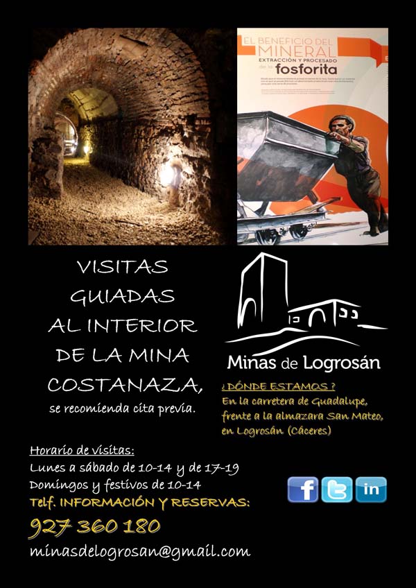 La mina Costanaza es nuestro primer destino de visitantes dentro del geoparque. El proyecto, que está inacabado, se completará con un completo complejo de museo, centro de interpretación e instalaciones hosteleras en el que el gobierno municipal ha puesto mucha ilusión y empeño. Pero Logrosán tendrá en el futuro otros atractivos para los visitantes, los restos arqueológicos de Cerro de San Cristobal que cuyas excavaciones ya están proyectadas, y otros lugares de gran interés y que esperemos se incluyan en el futuro como el templo de San Mateo, una verdadera joya del gótico rural.