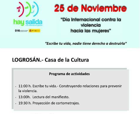 Entre los actos programados por el Ayuntamiento de Logrosán para conmemorar el Día Internacional contra la violencia machista, ha sido leído un Manifiesto por la primera teniente Alcalde, Dolores Fernández Piña.