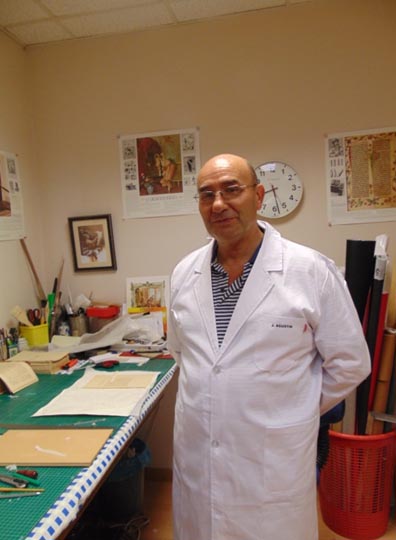 Aunque mi trabajo se desarrolla detrás de las cámaras, como se dice en el argot del mundo del cine, en mi caso es en un taller de restauración, entre Documentos, Libros y otros enseres para restaurar, no siendo fácil muchas veces la restauración de algunos documentos y otros objetos, por la degradación en la que se encuentran.