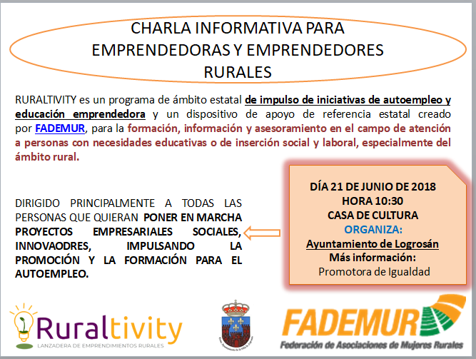 La plataforma Ruraltivity, puesta en marcha por la Federación de Asociaciones de Mujeres Rurales (Fademur), impulsará el emprendimiento en el medio rural de forma integral, gratuita y personalizada, para luchar contra la despoblación y el envejecimiento de la población en los pueblos.