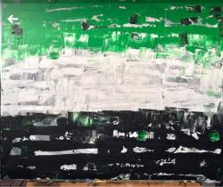 En este caso hay un cuadro de un gran pintor extremeño, Pedro Moreno «Parrina» (logrosano y amigo, al que admiro), en su cuadro “Érase la conquistadora”, nos muestra una bandera con sus tres franjas, pero no limpias, en cada una de sus franjas hay trazos de los otros colores, en la esperanza está la tristeza, lo no conseguido, en la pureza la esperanza y la desesperanza, y en el negro, la esperanza del regreso…