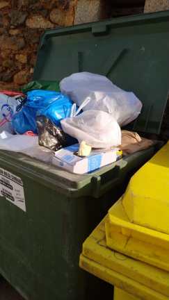 Una ciudadana denuncia que bolsas de residuos correctamente separados y depositadas por los ciudadanos en sus contenedores correspondientes, han aparecido mezclados en el contenedor verdes de basura ordinaria. La foto pertenece a la calle Picasso, pero esto se ha producido también en otras localizaciones, ha denunciado la misma vecina. ¿Para qué reciclamos entonces? se pregunta.