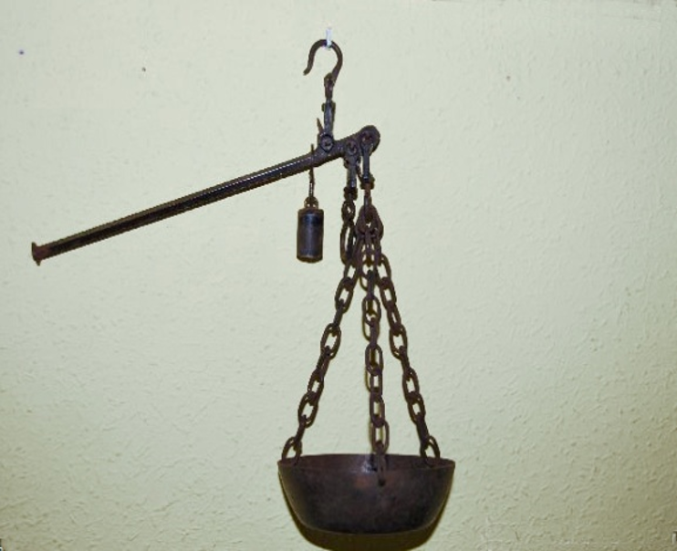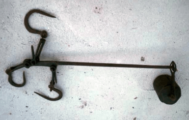 Los cerdos, corderos, cabritos…, se pesaban con una romana, que es, ya casi en desuso, un instrumento que sirve para pesar, está compuesto de una palanca de brazos muy desiguales, con el fiel sobre el punto de apoyo. El cuerpo que se ha de pesar se coloca en el extremo del brazo menor, y se equilibra con un pilón o peso constante que se hace correr sobre el brazo mayor, donde se halla la escala . La arroba es una medida de peso que equivale a 11,5 kg. Si se trata de líquidos; aceite, vino… equivale a 16 litros. También se utilizaba la libra como medida de peso.