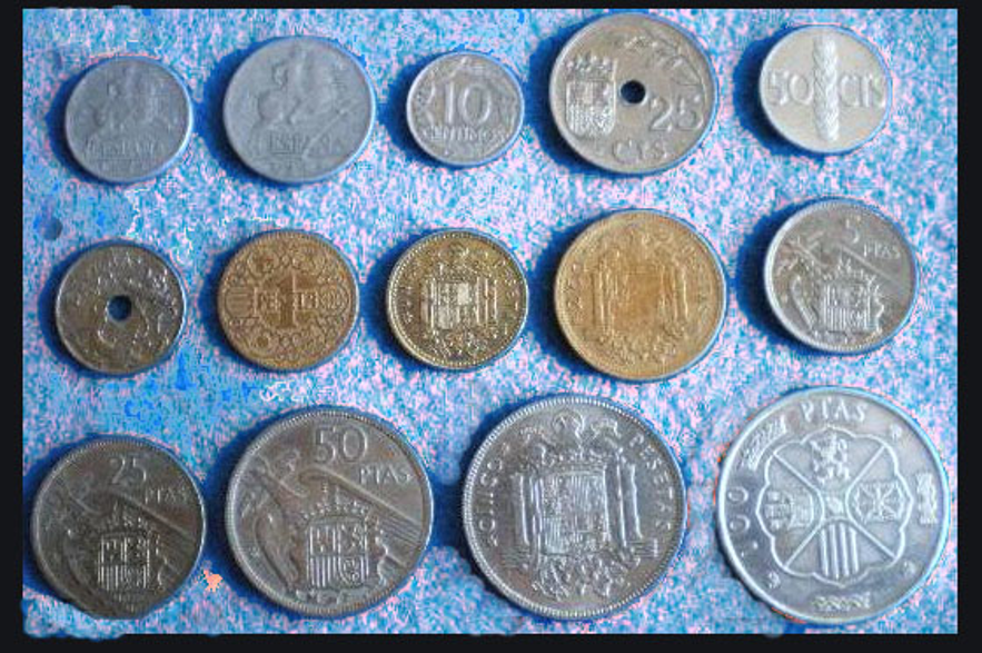 La peseta se divide en 100 céntimos, 5 céntimos es una perra chica, 10 céntimos es perra gorda, un real son 25 céntimos, dos reales son 50 céntimos. Un duro son cinco pesetas. Muchas personas se entendían con las cuentas por duros, veinte duros, cuarenta duros, treinta mil duros. Popularmente un talego eran 100 pesetas y un kilo un millón. Al dinero se le llamaba “la moni”.