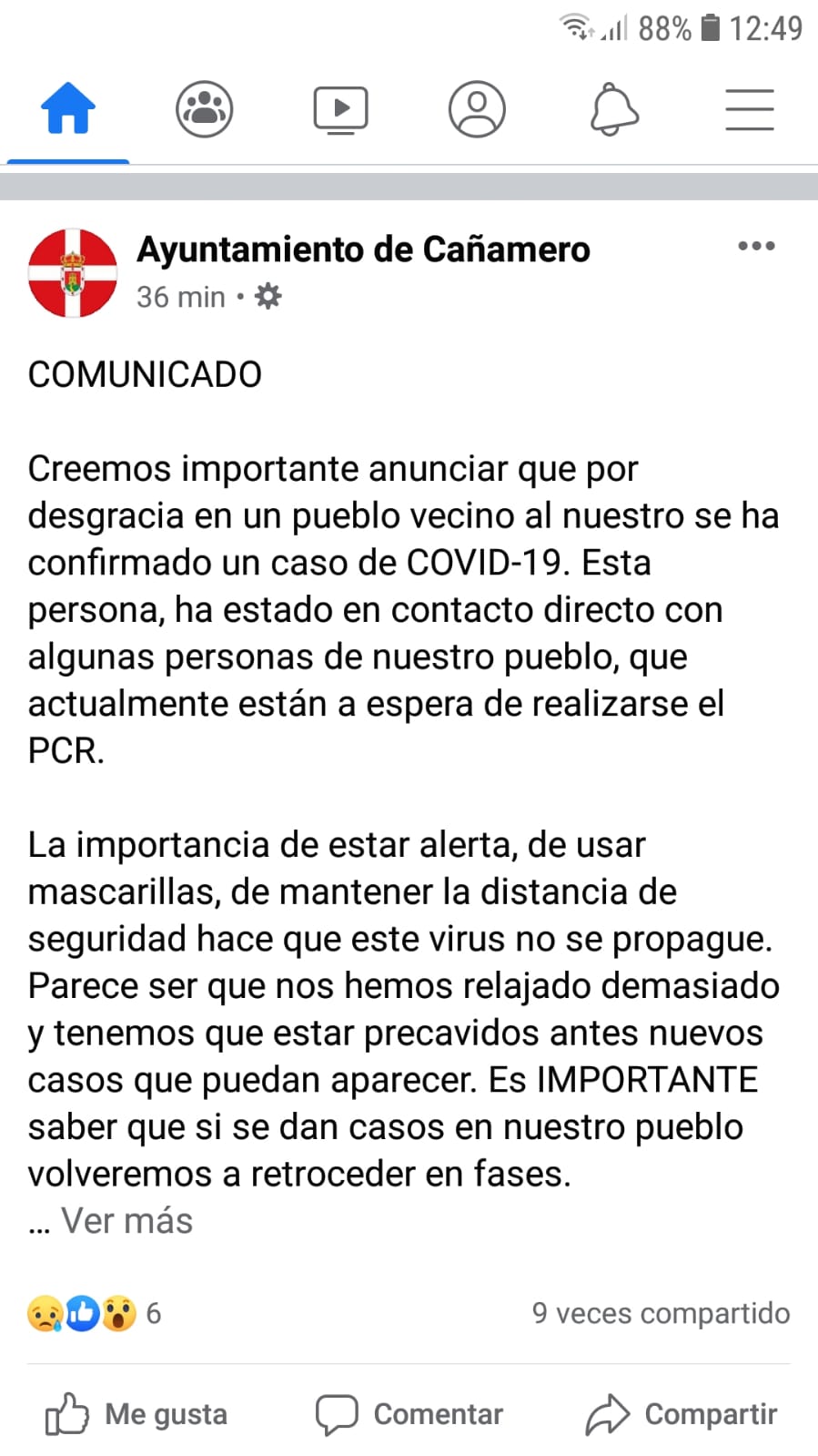 CONTACTO CON CAÑAMERO. La persona infectada tiene familia en Cañamero; el Ayuntamiento de de esa localidad ha publicado una nota en la que expresa su preocupación porque tiene conocimiento de que el infectado/a ha tenido contacto con su familia cañamerana. Añadido: