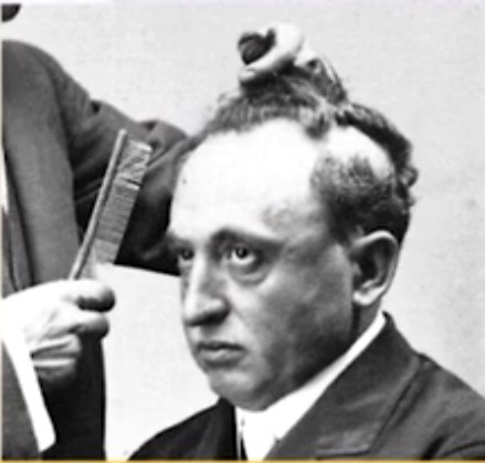 Debido a la quimioterapia, a Caridad se le ha caído todo el pelo de la cabeza; y se le ha dado por poner, junto al espejo de su cuarto de baño, una imagen de Mario Roso de Luna, según reza en el pie de foto: «implantándose pelo en Madrid, en 1910».